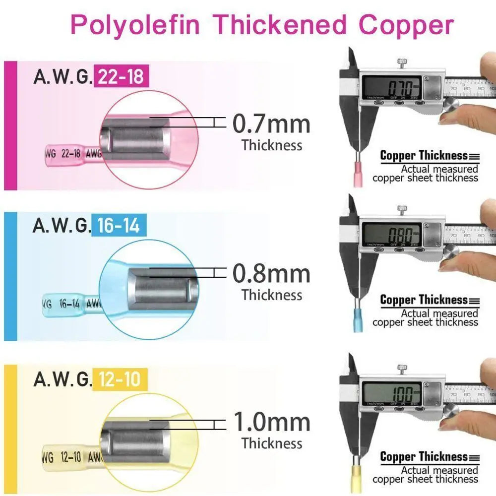 Made with heat shrink material and a true plated copper core, these crimp terminals deliver superior conductivity and long-lasting performance. When properly heated, the heat shrink sleeve tightens around the conductor to seal out moisture, dust, and vibrations, giving you a professional-grade finish every time.