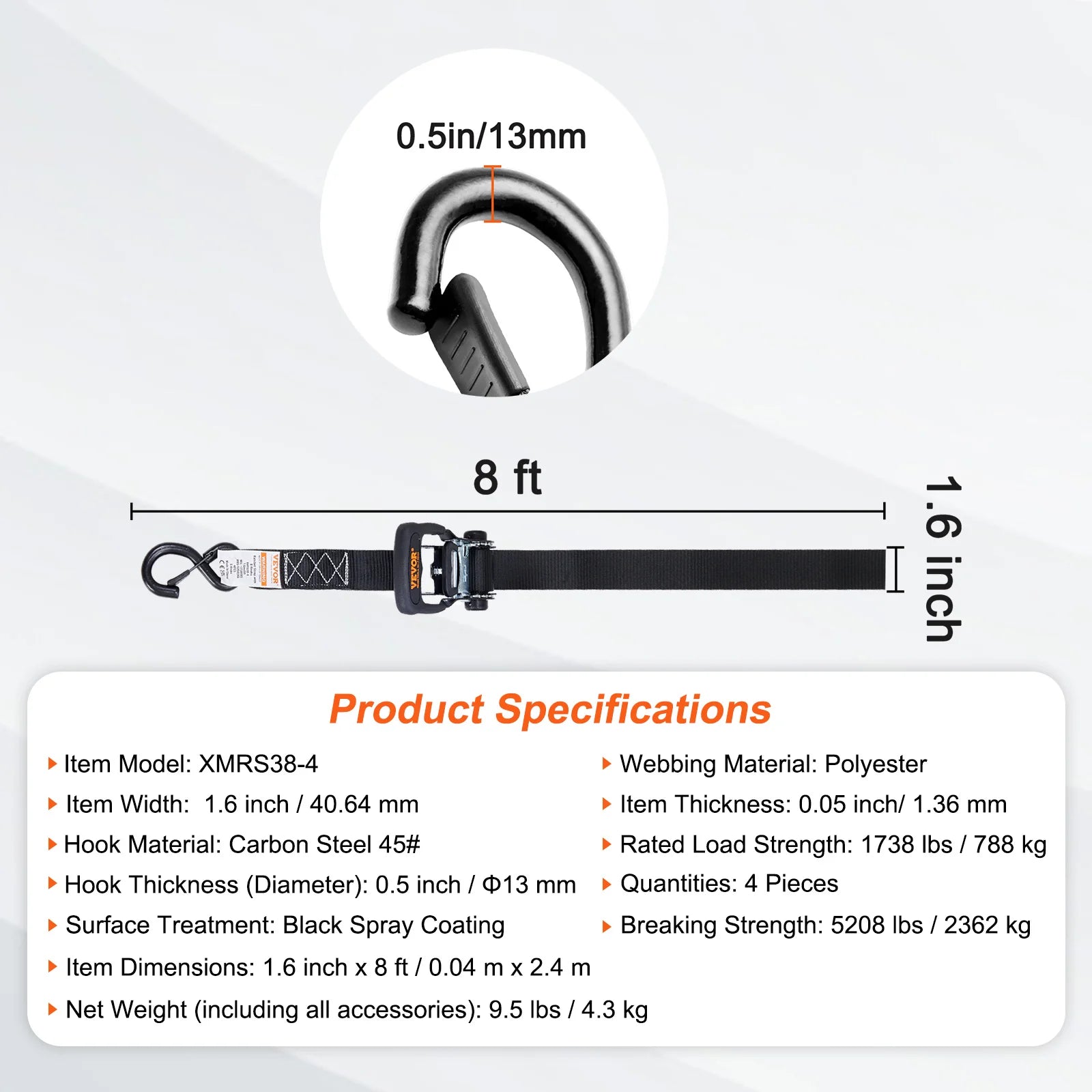 Trailer Ratchet Tie Down Straps 4 Pack Padded Handles