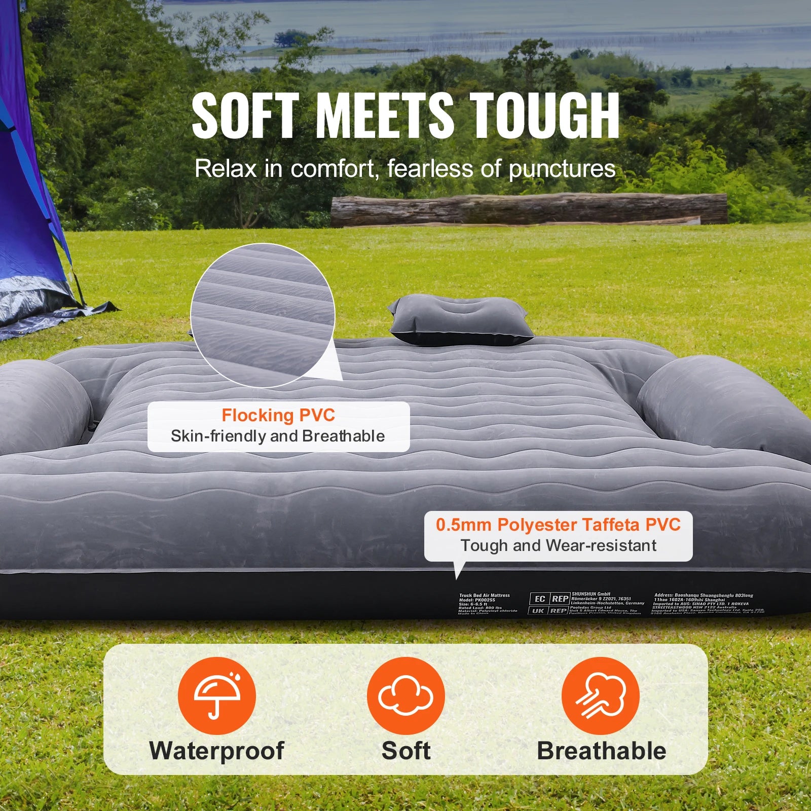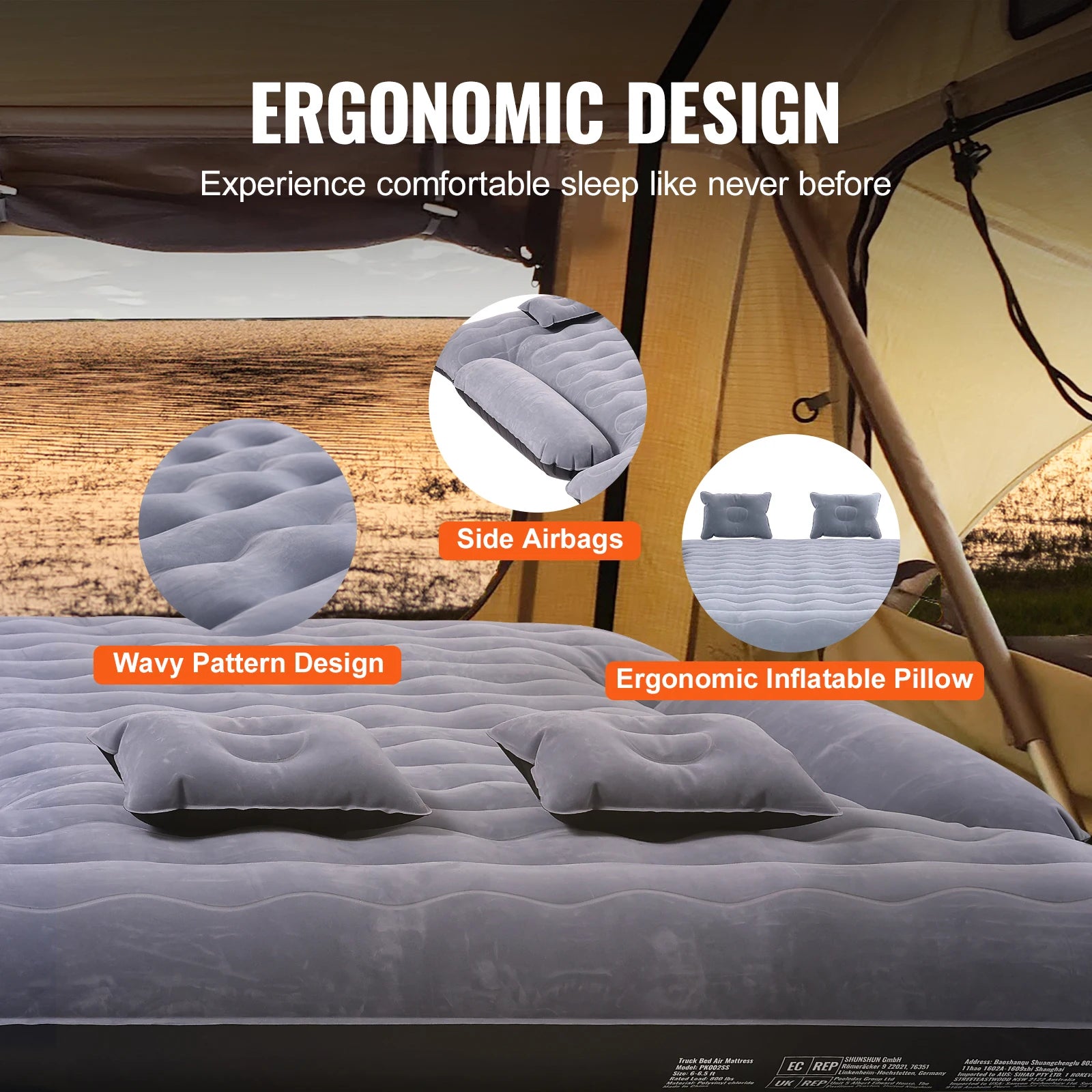 SucceBuy Truck Bed Air Mattress for 6-6.5 ft full-size truck beds transforms your pickup into a comfortable, on-the-go retreat. Crafted from premium materials, it provides a soft, supportive sleeping surface wherever your adventures take you.